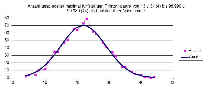 Die Gaußkurva habe ich händisch durch Parameter-Variation angepasst… Sowas machen nur Rentner mit Langeweile… (Wenn die geforderte Quersumme das Produkt von Stellenzahl und 9 erreicht, wird es natürlich „Unfug“, deshalb die Begrenzung hier auf 44.)